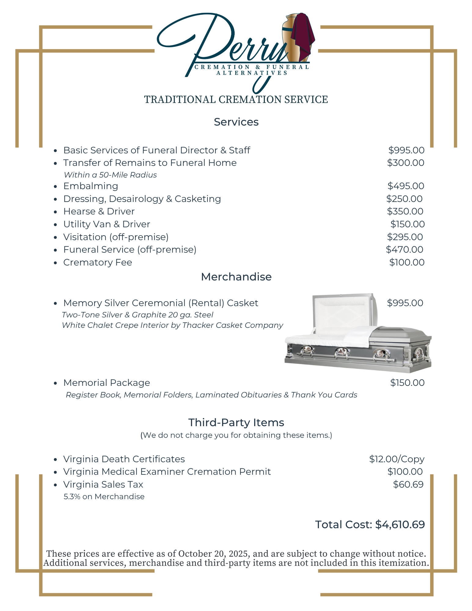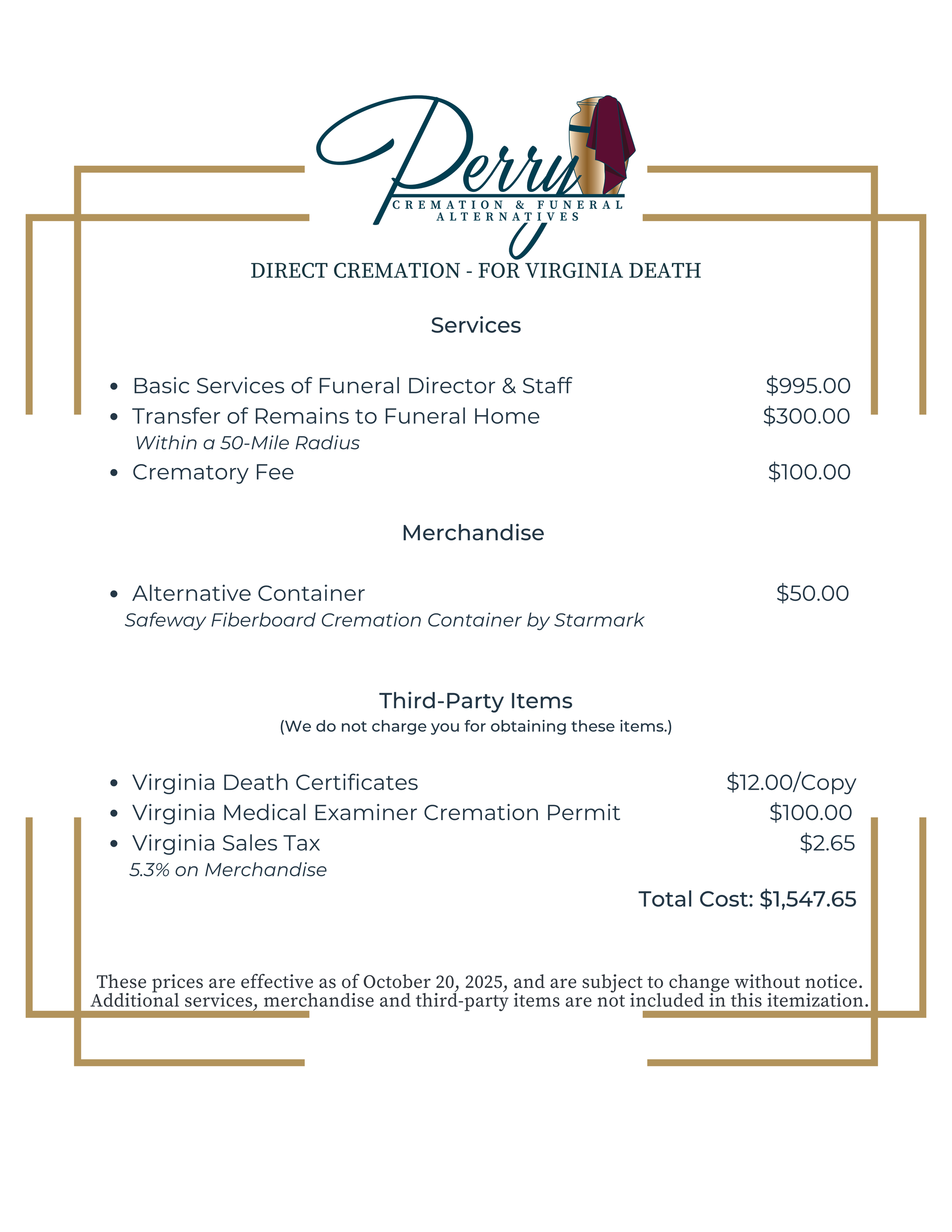 If your family has chosen cremation, we offer affordable services that help celebrate the life of your loved one. All options include a private family identification viewing at no additional cost.